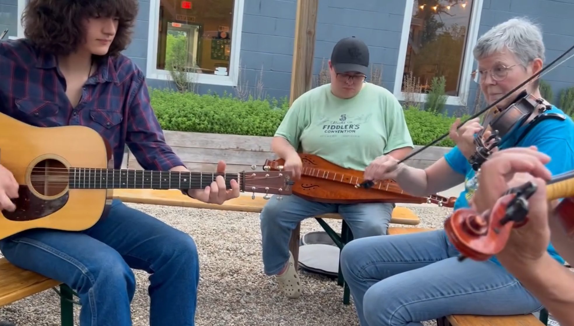 She was one of the first to greet me, alongside a dozen fellow Frankfort fiddlers, including Lucian Parker and John Harrod. The whole group was incredible, all of them playing bouncy tunes I’d never heard at impossible speeds. I tried to hang back, just listening for a while, but they were so fast I could barely tell which string they were bowing. My shyness became obvious, I guess, and they decided to snap me out of it. They invited me right into the center of the circle and told me to play whatever I knew and they’d take it at my speed. I pulled out the only two I could half-play: Angeline the Baker and Old Joe Clark. They matched my pace – slow, at first, then faster at their encouragement.